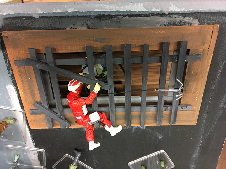 For the first time, the JC traveling display was in the same room as the class. We lined everything up along the outer wall and GI Joe King had his diorama displays along the left wall right when you came in. It was a good setup that got people who weren't there to customize to still drop in to check things out. Plus it allowed us to have more people on hand to help or cover for small breaks. Since we had a first aid kit on hand we also saw a couple of people in search of bandages throughout the day.