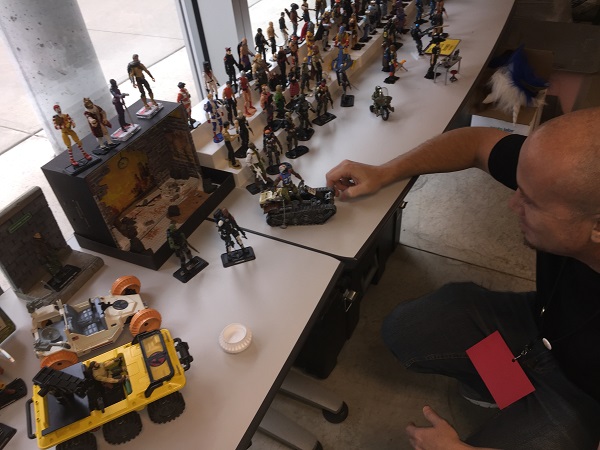 For the first time, the JC traveling display was in the same room as the class. We lined everything up along the outer wall and GI Joe King had his diorama displays along the left wall right when you came in. It was a good setup that got people who weren't there to customize to still drop in to check things out. Plus it allowed us to have more people on hand to help or cover for small breaks. Since we had a first aid kit on hand we also saw a couple of people in search of bandages throughout the day.
