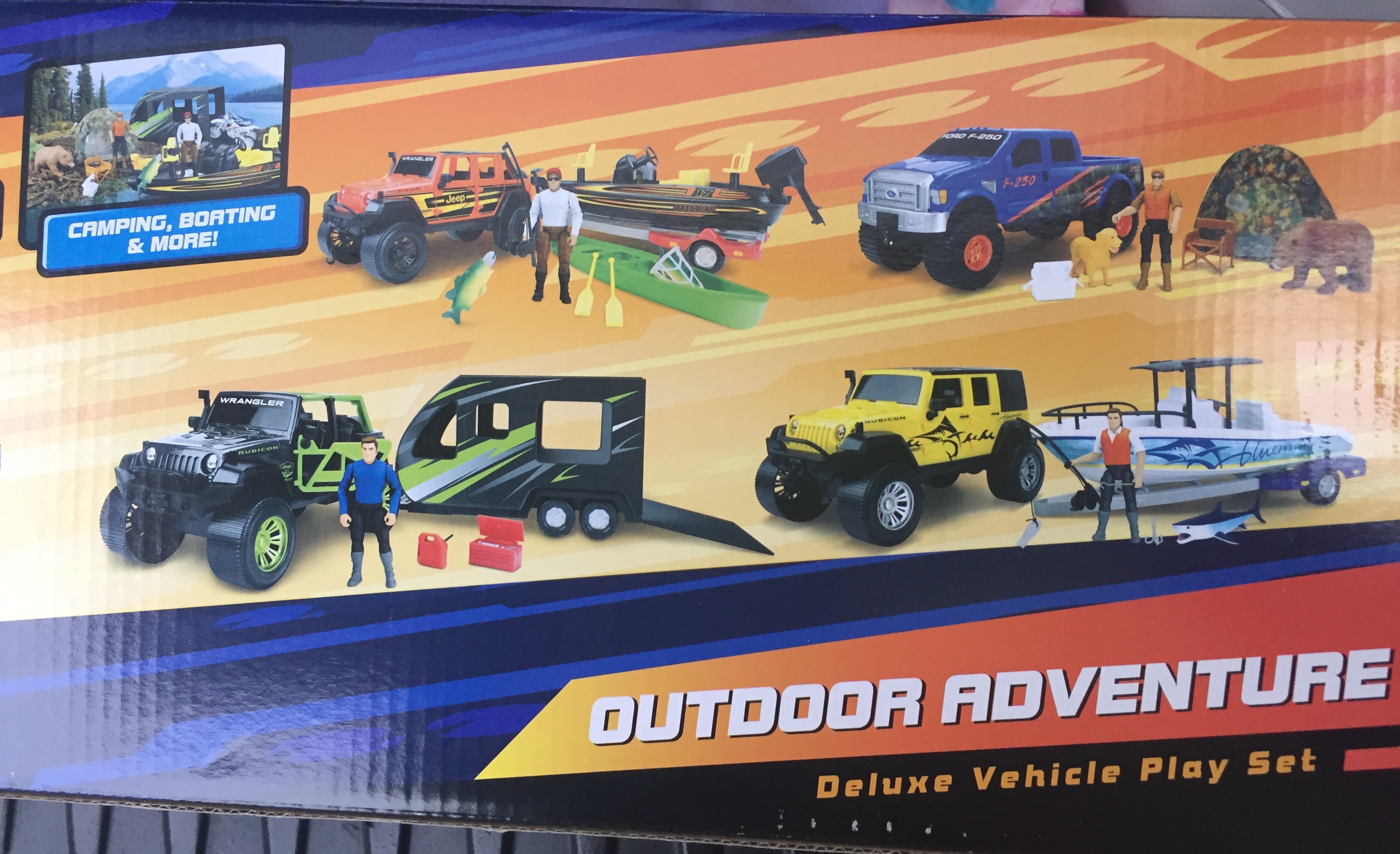 So yesterday, I was out doung last minute turkey day shopping and popped down the old Walmart toy aisle. Nothing new except their Adventure Wheels Joe sclaed vehicles now included new Jeep sets. I’d seen the lime Jeep drbindy reviewed a while back, but this was the first time seeing the black jeep with camper or hardtop jeep with sea fishing boat. Unicorn Addict and I took the boat down to the ocean as the tide rolled out and while not the most stable thing in the world, it stayed afloat. For $5 more then the jeep by itself, it is a pretty solid deal for the combo at $20 and way cheaper and more in scale than Brueder.