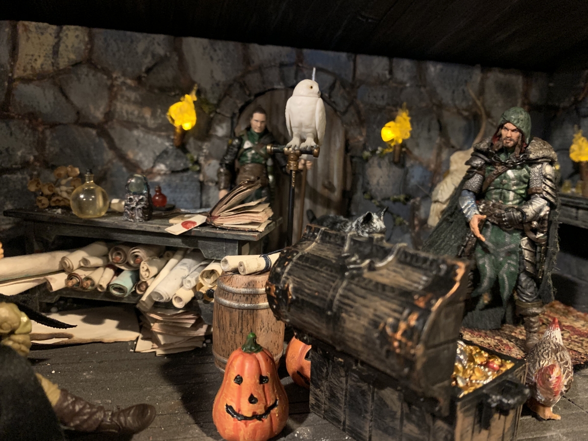 Updates to the wizard apartment dio. Mostly filled in some of the less realistic carving of the stone wall with foam putty as grout