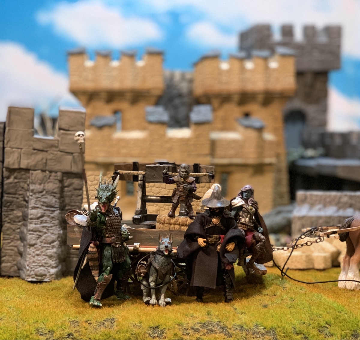 In game, we “borrowed” a large ballista from the abandoned and cleared dwarven stronghold of Axeholm. As we are hunting a dragon, we decided to mount it to our wagon for a little mobile artillery. We call her the Dragon Wagon.
