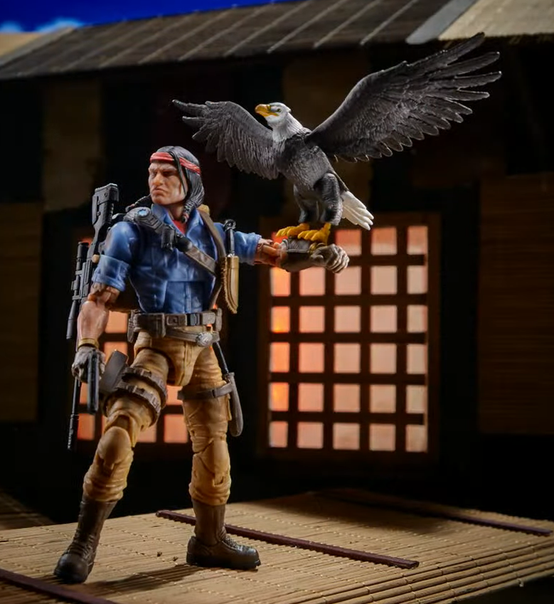 Then Taboo form the Black Eyed Peas came on a character he had a hand in helping develop for the line: Spirit. Now as a sniper instead of a tracker. Freedom comes with swapple ball jointed wings so he can sit perched (pegged) into his arm, shoulder, or backpack, with wings folded or getting ready to soar.
