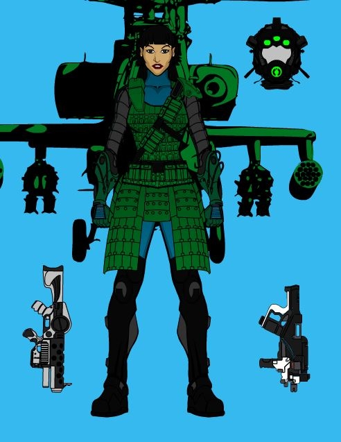 I had the initial design for Volare completed back in September, but altered to have small backpack mounted rocket pods. I had reasoned a female BF2K member might add a new dynamic to the squad. Later I realized the BF2K was lacking in close air support, so I took a look at the JOE vehicles and rationalized the Dragonhawk was future tech enough to work as a legit BF2K vehicle. I then took my female design and slightly changed her design to reflect the flight suit style. A quick rename and I was off.