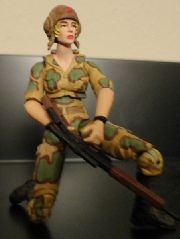 I sanded down the joints and actually took some of the height out of the legs but trimming some of the calf. I painted a base of khaki and then the splotches of green. I then outlined the green with brown. That's about it.