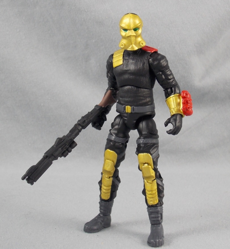 At first, the Iron Grenadiers squad was only to be four Troopers. When we realized that our story worked better with 7 figures, I decided to add some members. I went back and forth about whom to include on the team. While browsing the net, I stumbled onto the Bronze Bombers version of Darklon called Crazeblaze. I immediately imagined him in Iron Grenadier colors. I had a WIP sitting around in my fodder pile, so I updated the recipe and everything came together nicely. I did not stick to Crazeblaze's color scheme, I made some adjustments and added some red to tie Darklon into the team.