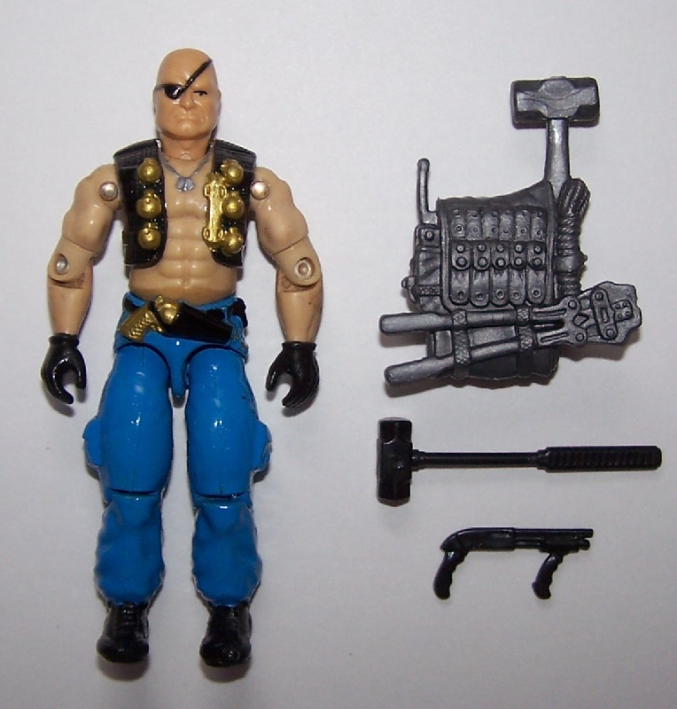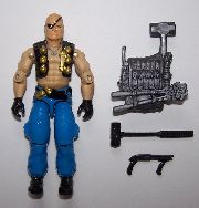 This is my version of the convention-exclusive Dreadnok Demolishor from 2004. I have lots of Street Fighter figure parts, so it's nice to have a Joe use for the Sagat head. The paint scheme is inspired by the original figure, but is not intended to be a reproduction. Using Street Fighter heads to create new Dreadnoks was an excellent idea. I've done a version of Crusher as well using a Zangeif head, and an original creation of my own called Chopper which uses a Balrog head.