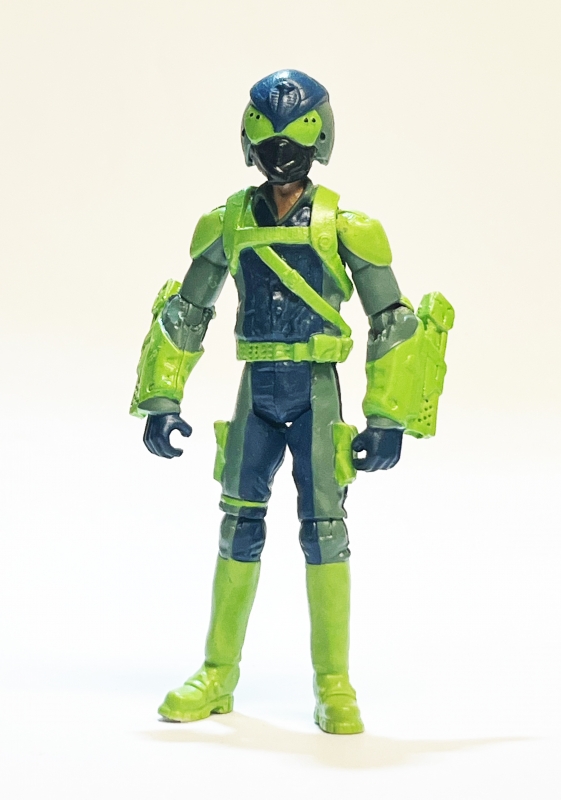 Cohesive uniforms generally aren't the way of the Dreadnoks. Dirtwing, being a pilot, is probably a bit more orderly than his fellow bikers, and wears a customized flight suit pulling from the colors of the Swampfire.