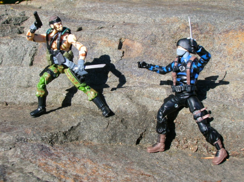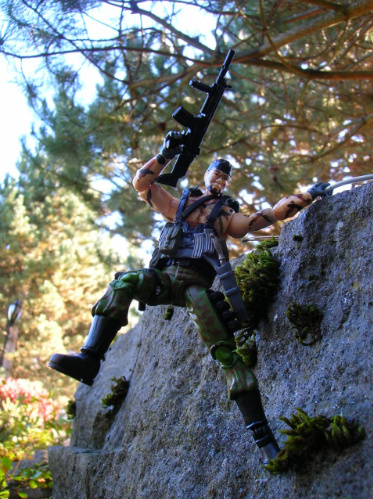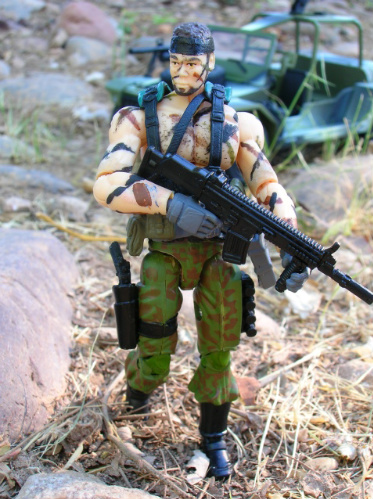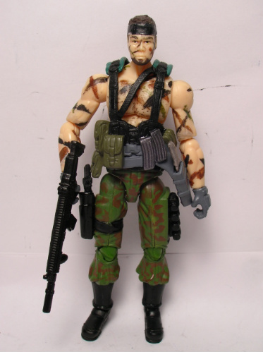 This custom is interesting to me as I won a lot of figures and vehicles on eBay and the seller accidentally included him. I asked, but he didn't want the figure back. All I got was the head and body, minus the lower arms, so I found a set of good lower arms from a Shipwreck in my fodder bin and replaced the hands with those of Firefly since the Shipwreck hands were almost as bad as the first 25th Viper's twisted hands. I finished the camo paint job and thought that PoC Duke's gear would look good on him. So, while I can't take 100% credit for this guy being original, I simply finished up what someone else had started.