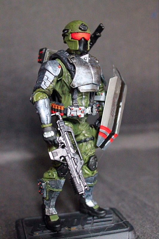 The only non MTF parts were the backpack, shield and cannon. The goggles were tricky to add to the helmet, but they are MTF as well.