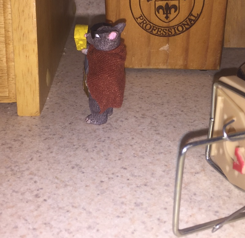 One day the brothers went to help a young rabbit who had been caught in a trap and got trapped themselves. The human trapper was a nearby farmer. When he took his haul home his wife killed and prepared the rabbit for stew. Not wanting to eat the mice, she decided to feed them to the cat. While cutting off their tails with a butcher knife, Jon bit her finger and she cut off his head. Before Justin and Eli could even react, she threw them to the cat who promptly ate Justin. Eli, however, luckily rolled under a hutch and was able to find a space to crawl through near the wood stove pipe.