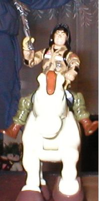 Eagle eye is an American (current) from Brooklyn. But when he was 3 1/2 his parents died and he was taken up by Cheif LongShot leader of an indian tribe. He could remeber some things from the "Big World" he called it but mostly ......Yep you guest it G.I. Joe. One day he was hunting and shot Flint (He was just walking arround in the woods) in the shoulder by acciedent and two months later joined G.I. Joe. He then went back to his tribev and brought back White Lightning.