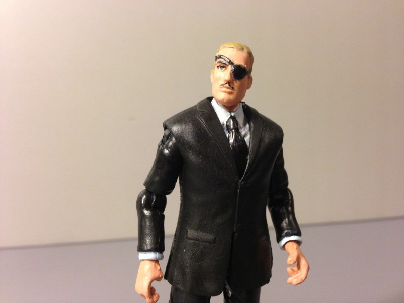 Head? random from fodder bin, modded; Body Professor X, suit coat MIB.