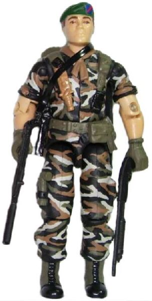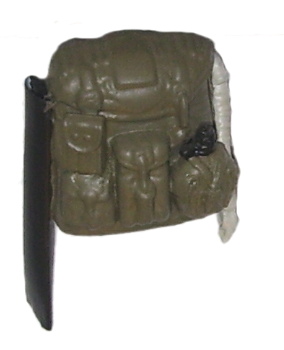Accessories: BBi MP-5 with a custom sling added and a silencer made from a can of air straw, BBi 9mm MP-5magazine pouch and BBi pouch added to the left hip, BBi radio added to the right hip, 21st Century Toys flashlight added to right thigh, Barrage V1 shotgun with stock removed, and a Lowlight V1 backpack with a custom shotgun holster made from a drinking straw, also a BBi canteen, 21st Century Toys rope, and a BBi pouch added.