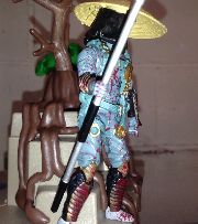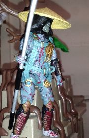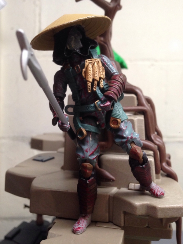 This is based on one of the unreleased 'Concept Case' ninjas that Hasbro showed at a convention several years ago. It's pretty different, but still achieves the same look, I feel. As an additional bonus, it is mostly built from parts I would have otherwise not had any use for, so that's always good, as is the fact that he took very little paint, so he's totally playable. A little blood splatter and the head modifications keep him from being an LBC
