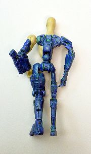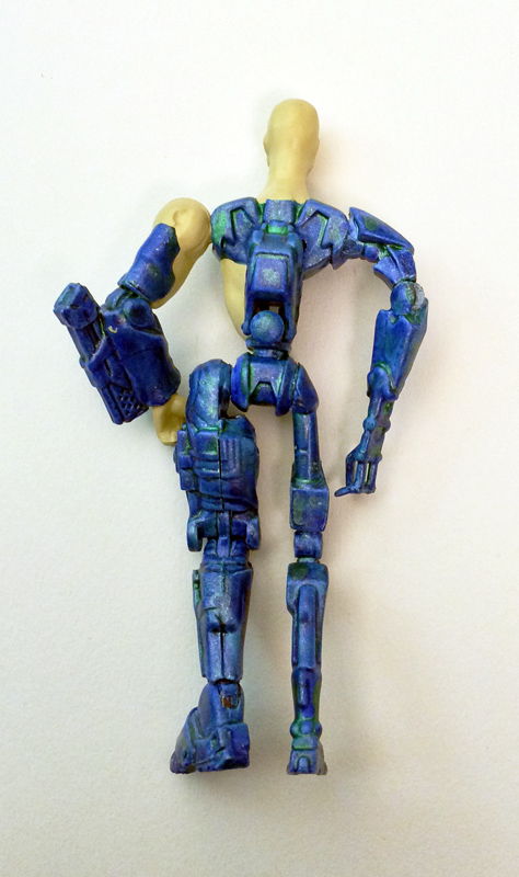 The head/neck were glued to the torso. The lower portion of the neck and the lump of side flesh are sculpted. The Battle Droid hand and foot were glued to the Magnaguard limbs.