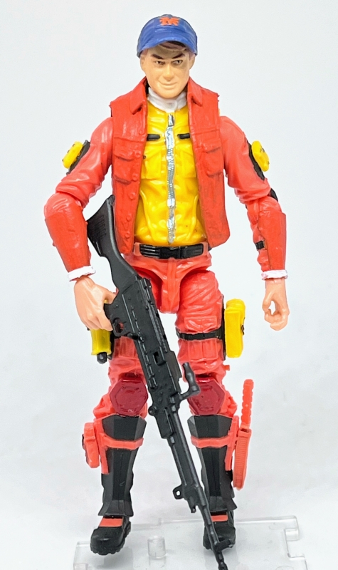 This custom is a recreation of the '80s Galoob 3.75" A-Team Murdock action figure. The original orange Murdock figure came in a 4-pack with the other A-Team members: Templeton "Faceman" Peck, Bosco Albert "B.A." Baracus, and John "Hannibal" Smith (unofficial A-Team member Amy "Triple A" Allen was only released as a 6" figure). There was an alternate 3.75" Howlin' Mad Murdock that came with the A-Team Jet, but that version was blue...and, in my opinion, not nearly as awesome. It's very hard to tell, but my Murdock's baseball cap has a tiny New York Yankees logo.