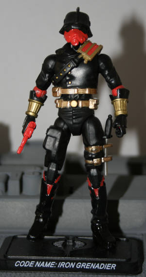 Destro's Iron Grenadiers are by far my favorite faction in the G.I. Joe mythos. I was a big fan of the vintage Iron Grenadier figure. It is one of my favorite army builders. I loved the Joe Con set. So with all this IG love I have going on, how could I not be excited about the 25th Iron Grenadier figure. 3 words..."Cobra Commander repaint". I really hated that figure. I set out to make a better version. Not really a remake of the original but something that had the "feeling" of the vintage figure. I always saw the IGs as more regal and I tried to put together a figure that I felt could pull that off but still be a basic battlefield trooper. Also....the figure required no painting except for all the gold so he is 100% playable.