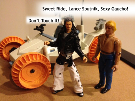 Lance Sputnik, Sexy Gaucho, was intended to be one of 2013 G.I. Joe Collector's Club Convention 'mascots' for JoeCustoms alongside Shipface (Travelling Shipwreck.) Unfortunately, while doing some final packing and re-arranging, LS,SG, fell down between the seats and was considered Missing In Action for the entire convention. He was replaced by an even sexier LSSG created by HypnoHustler, and a disembodied monkey head, affectionately referred to as the F U Monkey. All of the awesome exploits can be found in the 'Shipfaced' forum on Joecustoms.com. Lance Sputnik, Sexy Gaucho, was recovered from between the seats while unpacking from the trip.