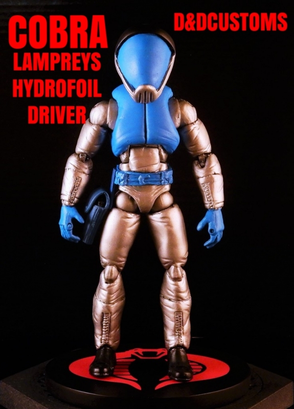 Custom sculpted and painted with professional non toxic sculpy and water based acrylic paints. D&DCUSTOMS PRESENTS - CUSTOM GI JOE MARVEL LEGENDS BLACK SERIES STYLE 6" 1:12th SCALE COBRA LAMPREYS Hydrofoil Driver Pilot.