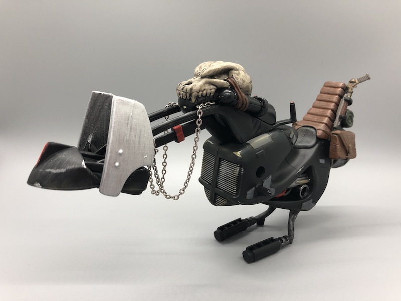 I've had this swoop bike for years and always knew it was going to be for Lobo, I just never had the right parts until recently. It received a full repaint. I added a SW "shotgun" to the side for Lobo to use when dispensing violence as well as the always present chain.