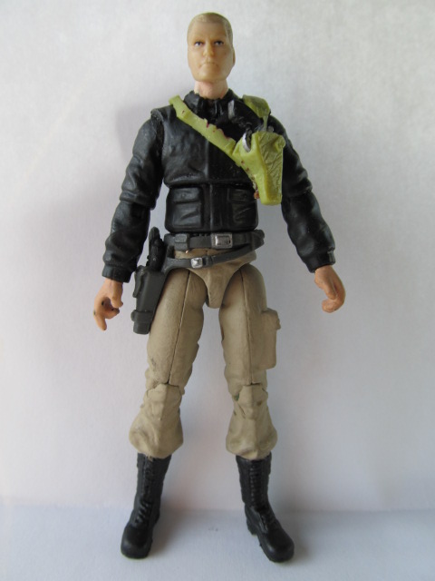 In order to make this not look like Hawk in a black jacket, I removed the sheep's wool collar from the neck and shaved down the medals and ribbons from the chest to give it a smoother look. I was not crazy about the yellow weapons of the original, but decided to use the greenish/yellowish shoulder holster of Tunnel Rat, but cut the ammunition from the straps. When I first saw a picture of Mace, I thought it was a version of Duke, so Duke's head was the perfect choice for the figure.