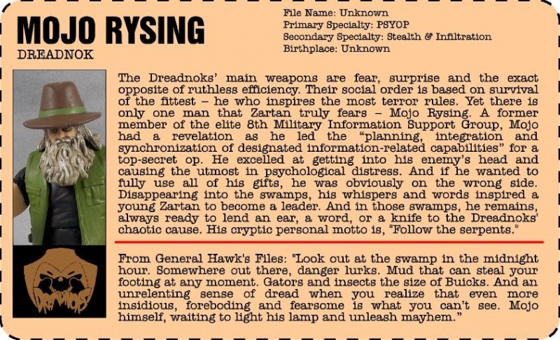 The rest came about from drawing from the WWE's Bray Wyatt, with the black shirt and vest over top of it. I used different greens to harken back to the original swamp skier and Sears set from the Dreadnoks. The skiff idea I kicked around for a bit, not sure if I wanted him to have one or not. I stumbled upon what I thought would make a great skiff at a comic book store. I went with my own Resurgence tradition of making a "deluxe" figure Dreadnok and painted up the skiff to go along with him.