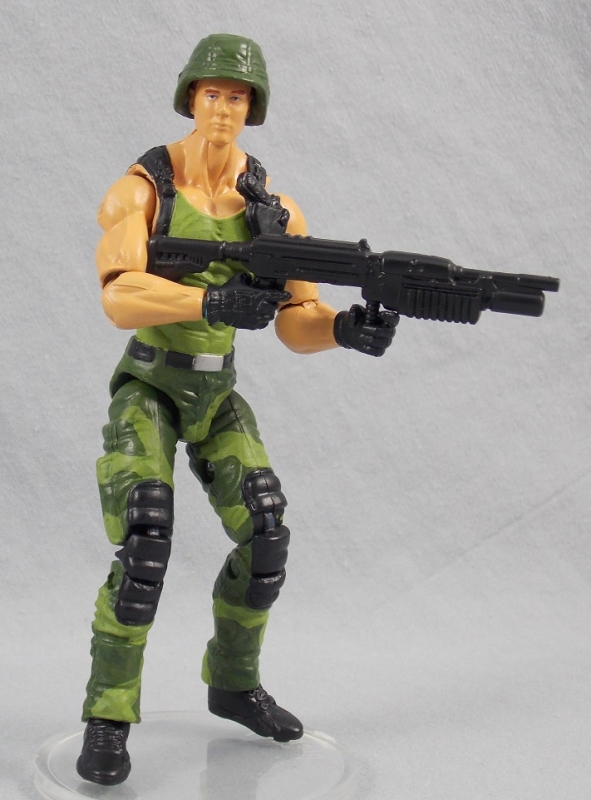 Mac Tough was the second of the original 8 American Defense team members, numbered AD-2. Remco repainted Mac Tough a few times to make different characters. Among them was Commando Hank, which Bucky had previously made a custom of. When I built my custom, I wanted to use different parts to give Mac Tough his own look and identity, so I started with a large body Roadblock as a base. That instantly set him apart.