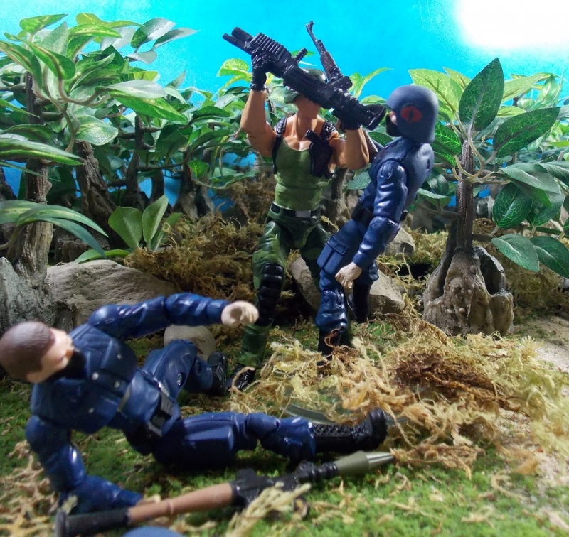 American Defense was a line of 3 3/4'' military toys sold exclusively at Kmart in the eighties. The line started with Galoob's A-Team molds and Remco grew it from there. It was later produced by different companies and ended up in dollar stores and discount outlets. Similar to GI Joe, it included a wide variety of colorful characters. However, without a cartoon, comic or any marketing to back it up, the line rode GI Joe's coattails for a while and then disappeared.