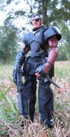 Major Bludd was always one of my favorites from the original RAH line. The first figure was one of my favorites, even with the straight molded right arm. I loved him in the comics and thought that he was one of the best Cobra characters. When the Sigma 6 line came along, I figured that the Major was a natural selection for an addition to the line. We are still waiting for Hasbro. I decided to make my own version. I wanted to be faithful to the original design, but also make him fit the Sigma 6 style. I decided on the Ninja Bat arm after most of the custom was already together. I think that and the eye patch are the 2 details that scream Bludd to me. It had a lot of fun with this one.
