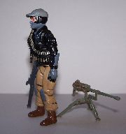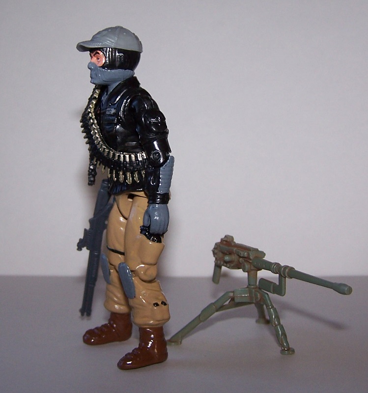 Three versions of Night Fox were released between 2010 and 2015. This custom is based on the first one, in order to give us an ARAH version of the character. I tried to be as faithful as I could to the original, the mask on the Beach Head noggin allowed the two-tone look from the file card. I like that he's a Navy SEAL in desert gear, and the overall look is very nice, so I tried to replicate it as best I could.