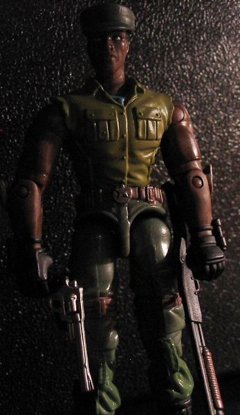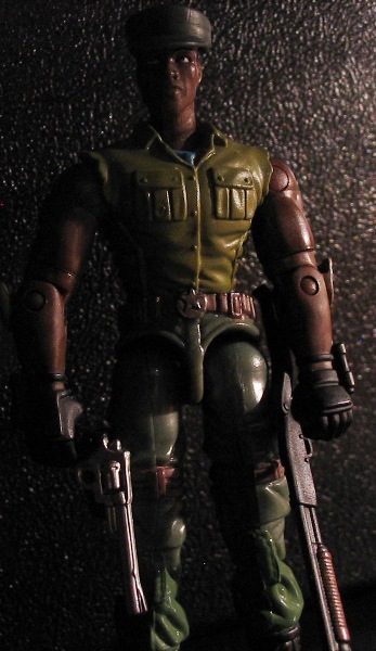 Total LBC but I liked the look as is, with the ripped shirt, mismatched greens and ridiculous guns. He really looks like an African militiaman. I doubt I'll keep it due to the use of such good parts for which I have other plans, but I wanted to capture him and give my LBC a 'life.' And I love that first photo.