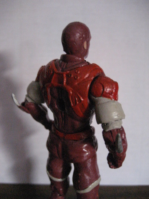 Wow, this was not an easy project at all. Nemesis Enforcer, in my opinion, is the coolest character in the whole Joeverse and attempting to make a worthy custom was a big deal for me. I knew I wanted to create one based on the figure and not the movie, and have as few changes as possible. I omitted the side "compartments" on his thighs (they always made me think he was carrying guns) and went with a simpler waist design (I never understood why he had a "w" on his crotch) to make the chest piece the main focus point. The last change (which I now regret and will probably omit later) was to paint the shoulder pads red, making them look like an extension of the chest piece.