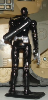 Everybody I'm sure knows the story of Ophelia by now so I'll spare you the chatter. She was a figure I wanted in my Joe-verse and I just had to have her, point blank. The head came about by accident. I was screwing around with one of the leftover Baroness heads, that I pulled the hair off of for other figures. I attempted to cut off her glasses and failed big time! What to do with a screwed up head? Cover it with sculpy! I filled in the back and formed the visor with sculpy. Shiny black was the way to go. Hot!