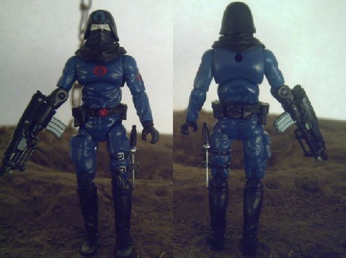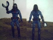 Over Kill is only half human to begin with, (over 50% of his body has been replaced by mechanical parts) so he has very little humanity left to bother him. This means that he truly enjoys performing evil missions and doesn't have any twinges of conscience getting in the way. What feelings he had left were digitally tweaked to not interfere with his duties as the Battle Comander of the Cobra B.A.T legions. Over Kill has been upgraded mechanically over the years. His internal targeting computer is now directly linked to a GPS (Global Positioning Satellite) system for increased accuracy. The armor over vital components and organs has been reinforced and his sweat glands have been modified so he no longer smells like a wet sheepdog at fifty meaters.