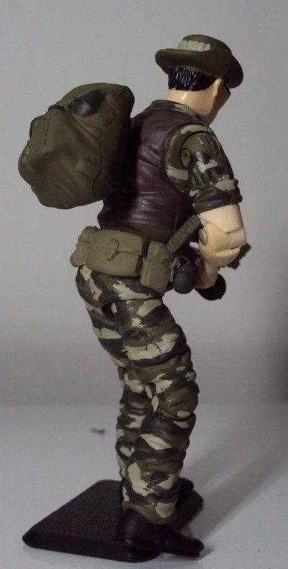 I had a figure left, so I decided it would be better off looking like something less colorful than the original. The uniform was a try to emulate the tiger camo used for the Green Berets in Vietnam.
