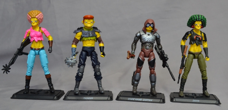 This figure was a part of my second series of Simpson crossover customs using LEGO minifigure heads and accessories. I knew right from the start that Patty was going to be a Dreadnok. She and her sister both have the perfect personality to join with Zartan and his gang. Patty became Zarana because her hairdo was more suitable for the character than Selma. I took some cues from the modern SDCC version of Zarana for the hair color.