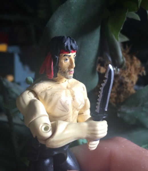 I have waited years to do a John Rambo o ring custom. After a lot of turmoil and issues with casters I never thought I would be able to get the parts. Then a fellow o ring Arah lover got ahold of these sculpted Rambo parts and made them available. I am very happy with how he turned out. He has the perfect droopy eye Stallone look to him. I made him look dirty and with a 5 o'clock shadow. Rambo should never be well kept in my opinion.