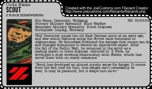 This is among my two or three favourite customs; it seems to be the one that both looks good in its own right and also captures the feel of the original figure. I originally planned to use the head for Wheels with the Hawk helmet. It was only when I gave the figure back his original helmet that I realised that it would work really well for Scout. I added the rather odd ankle holster and the knife to hide where I had sliced off the BTR bits from the boots.
