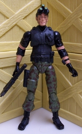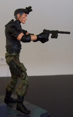 I'm always up for a Sam Fisher custom, so when I got my hands on some 25th fodder, he was at the top of my list. The torso was "dremeled" down and the vest was sculpted over it. The goggles are made of epoxy, plastic bits, and rubber straps. Sam is depicted in his Pandora Tomorrow uniform, which is different from the first game.