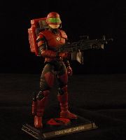 You wouldn't believe how much effort I put into this guy. The first time I struggled for like a week to get his torso apart for painting... only to end up mangling his body in the process. I had to find ANOTHER Zartan, and paint him up fully constructed, which considering how Goopy that shade of Crimson I used is... is a substantial pain in the tush. Even now, that paint still likes to chip off (making me wish I'd went with Red w/ Crimson highlights).