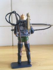 I have tried to take into account the various colorschemes of all divisions of Destro's Army and stick to the maximum of four colors for original G.I. Joe figures. Regarding the latter, I have to admit that the figure ended up with five colours because I chose to preserve the original silver paint on the chest as they now resemble straps of the silvery grey backpack.