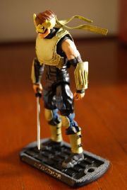 Lately I've been making a lot of ninjas, and I decided to give myself a challenge and make T'Jbang, one of the uglier ninjas from Ninja Force, into a cool, badass mo-fo. I think I came close to pulling it off.
