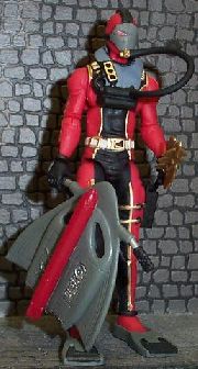 Undertow are the Iron Grenadier's frogmen. It is said that there is nothing they won't swim through to get the job done. The vest came from the ARAH Undertow figure. Essentially, I just Dremelled away all of the torso except for the parts that I wanted. The front and back pieces were then super glued together and it fit perfectly around the neck of the figure. When I started this figure, I had planned to repaint it according to the ARAH color scheme. Then I realized that the existing color scheme already had the two primary colors of the IG forces - red and black. I needed only to add some gold trim to make this guy fit right in with the others. Yeah, you can argue that I took the lazy way out and you'd be partially right. But I realized that using the existing color scheme also meant that I wouldn't need to be concerned with paint rub at the joints.