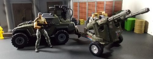 I always wondered why Hasbro did not repeat the formula they did with the VAMP and VAMP Mk II and repaint their early vehicles in other colors. I was curious to see what the VAMP II would look like in green. Since the 50th Anniversary line made that vehicle easy to obtain, I gave it a shot. At the same time, I wanted to homage the VvV VAMP set by including the Whirlwind Gun.