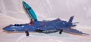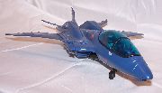 The pilot is the Terror Viper. The only way to get a figure to fit sitting upright, even after taking out all the material in the cockpit, is to sit him all the way in the back, which makes the open space ahead of the pilot under the canopy seem a bit off. A pilot would have a limited field of vision from that vantage point. So I worked up the backstory to account for this. The Vampire is the most maneuverable fighter jet in existence, not just because of its many control surfaces and advanced avionics and vectored thrust capabilities, but because the pilot shares the cockpit with an AI unit called HOMUNCULUS (Hands-Off Monitoring User-Neutral Control Uptake Liaison-Ultra System). HOMONCULUS has a full range of vision so the pilot doesn't need to concern himself with that, and the two work together to pilot the aircraft. The AI unit sits at the front of the cockpit, and is made of a 1/18-scale water cooler with a bit of chrome paint.