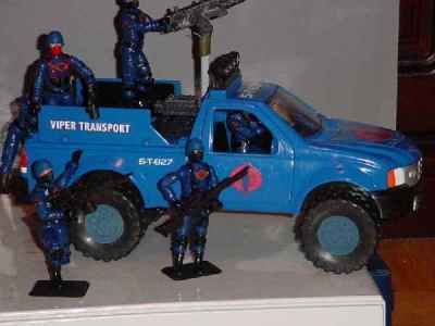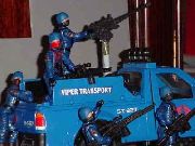 Viper Transport: Really nothing more than a high end technical, the V-transport is a full-size pickup truck with an automatic weapon hard mounted in the back. The make and model are not standardized, but rather dictated by local availability. The one thing that the head snake does insist on is it be painted cobra blue and mount a crew served weapon.