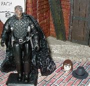 V is an anarchist revolutionary fighting against a fascist regime in a near future United Kingdom in Alan Moore's and David Lloyd's "V for Vendetta". V was a prisoner of the Larkhill Resettlement Camp in cell 5 (Roman numeral V). There he was subjected to injections that killed all the other test subjects, but made him stronger, faster, smarter, and quite mad (or so it appeared). When he escaped he set about a plan to take out those who ran the camp and bring about a revolution. Plotting from his Shadow Gallery in an abandoned Victoria Station he dons a Guy Fawkes mask and uses daggers, explosives, and tear gas, as well as, deception and cunning to shake up the totalitarian government. He saves and then enlists a young Evey Hammond who helps him carry out his final plan.