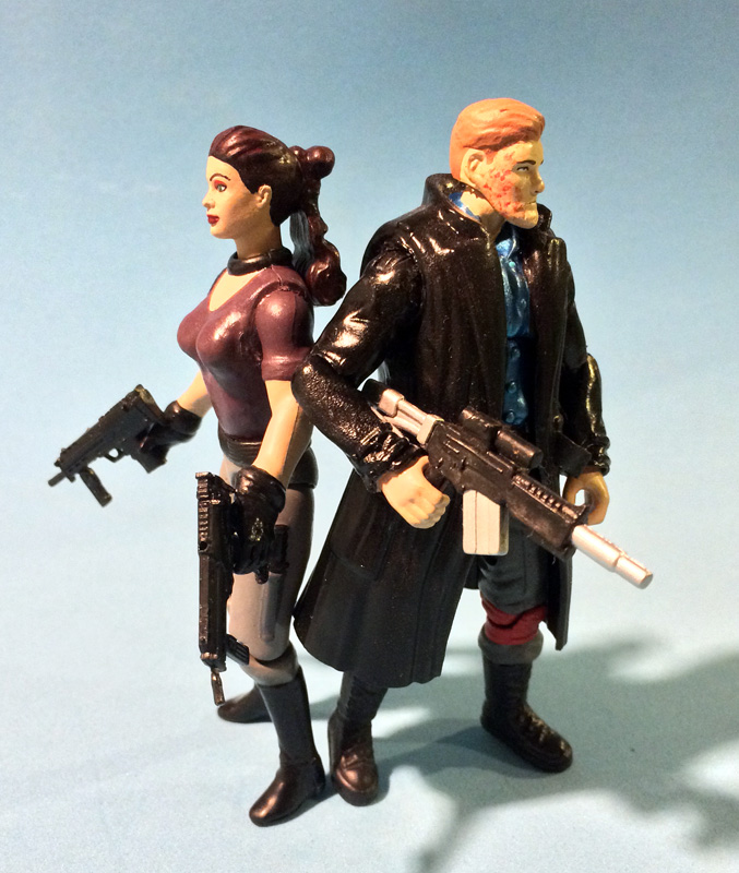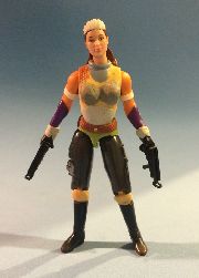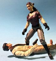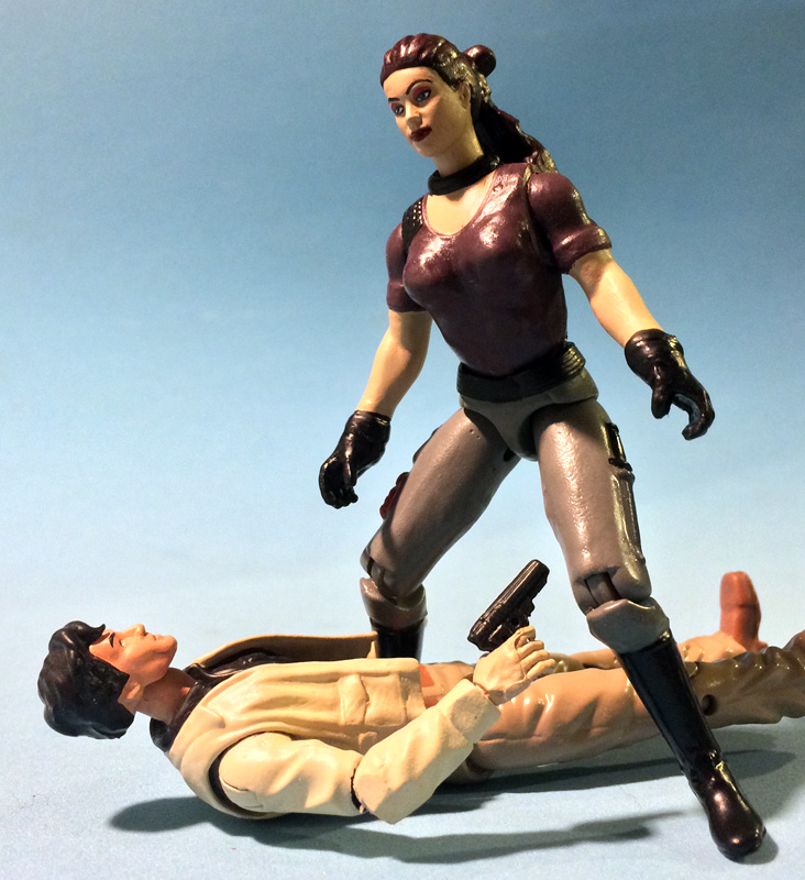 Very loosely based on the character's death scene appearance, and shows what she might have worn had she survived. I considered adding some hint of a techno spine, but why give the character a sci-fi edge it doesn't need? The parts are a mixture of ARAH, Star Wars, DCIH, and Indiana Jones. The Padme head, based on Natalie Portman, is a decent approximation for the look of Famke Janssen. The buff arms are junk parts. They have no elbow articulation at all, but I like the streamlined look better than other parts I tried.