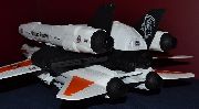 The armament consists of a nose mounted Vulcan cannon, booster platform mounted Avenger rotary cannon, 2 Sparrow missiles, 2 Sidewinder missiles, and 2 tactical nuclear warheads housed in a classified air-to-ground missile of unknown origins.