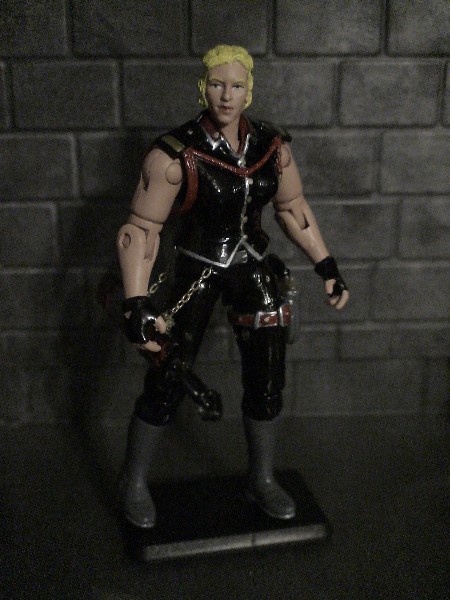 This is a 'what if' custom figure. I took Destro's existing son and flipped the gender as well as incorporated his girlfriend's name as this characters code name. Besides, the line could always use a new female. I don't have anything for a bio because as I mentioned it's a 'what if' custom. It's basically made from a bunch of spare parts I thought I'd never use and I'm extremely pleased with the outcome of such a far fetched idea.